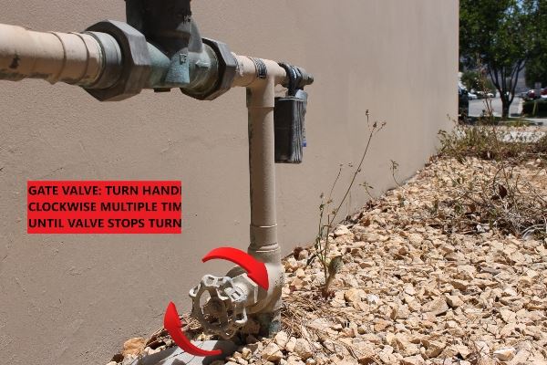 - Gate Valve, turn handle clockwise multiple times until valve stops turning. (NOTE: If valve is difficult to turn, do not attempt to use a wrench to assist as this may cause valve to break.