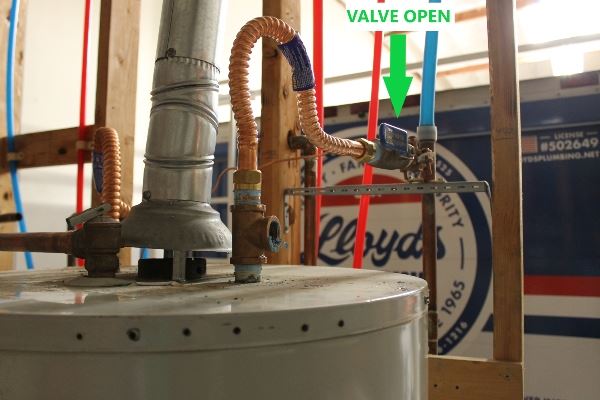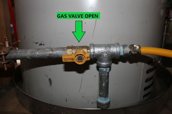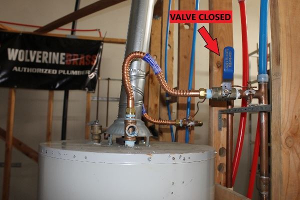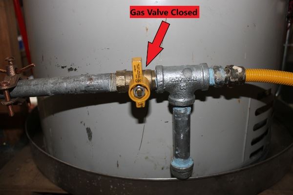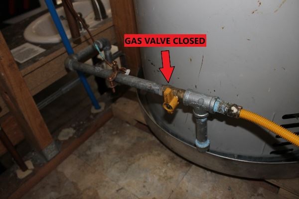 - Gas Water Heater: Locate the gas shut off valve next to the water heater. Turn valve one ¼ turn clockwise until handle is perpendicular with piping. If valve does not function, call your gas purveyor to turn off gas.